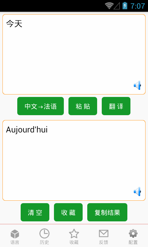 1.中法互译支持中文和法语文本翻译,支持中文和法语语音输入。