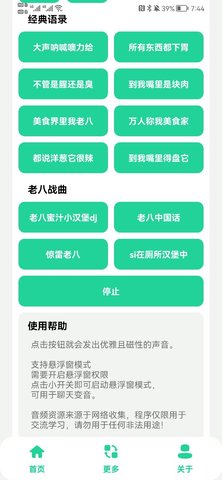 1、八音盒老八版语音恶搞软件,无广告,点击按钮播放,还可以随时打开浮动窗口模式。