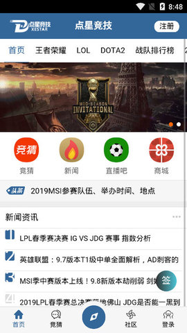 6、点星竞技软件是关于竞技游戏的。喜欢玩游戏或者关注游戏的朋友可以来这里,点星竞技软件会实时更新游戏情况。