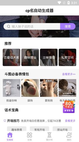 3、cp名自动生成器有大量有趣的聊天脚本,所以你的聊天不再是冷的,你的情商会迅速提高。