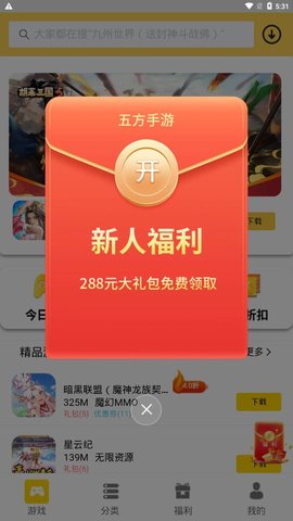 1、五方手游提供了丰富的游戏资源,让大家可以随时轻松下载,打开宝箱获得金币。