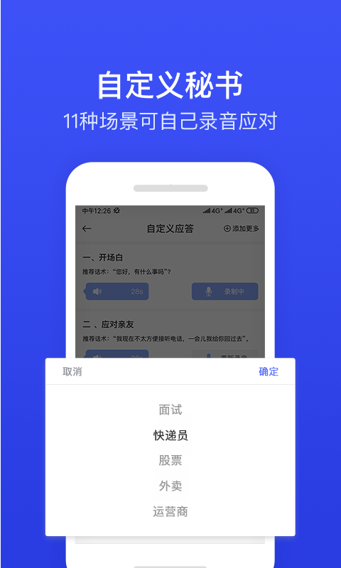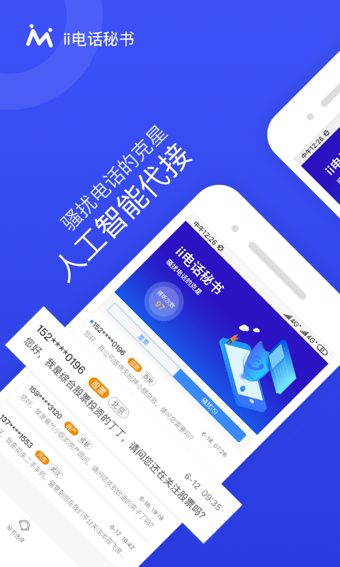 1.ii电话秘书app人工智能代接,24小时守护,忙时礼貌应答,再也不用担心错过重要电话。