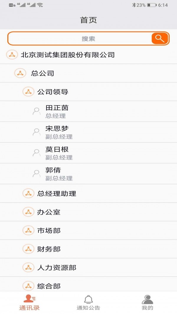 3.可以根据号码、姓名、拼音简写或全拼快速查找全体员工,一键拨打电话、发送短信。