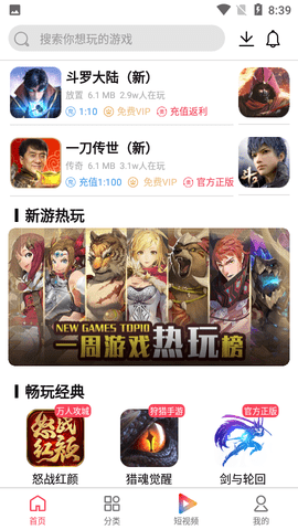 3、大拇指手游操作方法简单自由,打开软件首页,即可看到最新热门游戏推荐。