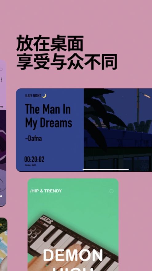Dtd Playlistapp让每个人都能在不同的场景中找到适宜的歌单,轻松听歌。这是一个十分酷的基于场景的音乐收听软件。这里,我们为你准备了10种不同的音乐。这里的每首歌都是能够分享的。