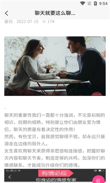 会恋话术app一款搜集大量聊天技巧的挪动互动社交软件。这款应用能够让用户轻松进步谈情说爱的技巧。在交友和聊天的过程中,用户可能偶然会对如何推行一个话题感到困惑。