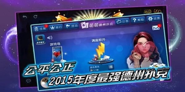 口袋德州扑扑克是一款十分经典的手机德州平台,游戏中打造了经典的德州的玩法,让玩家体验到多样化且变化频繁的游戏乐趣,游戏中还有更多的免费的福利可以直接领取的,上线就可以领取红包。,是yn下载最新推荐的安卓游戏。