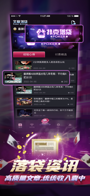 扑克落袋是一种技巧性非常强的扑克游戏,玩家们除一定的运气成份外