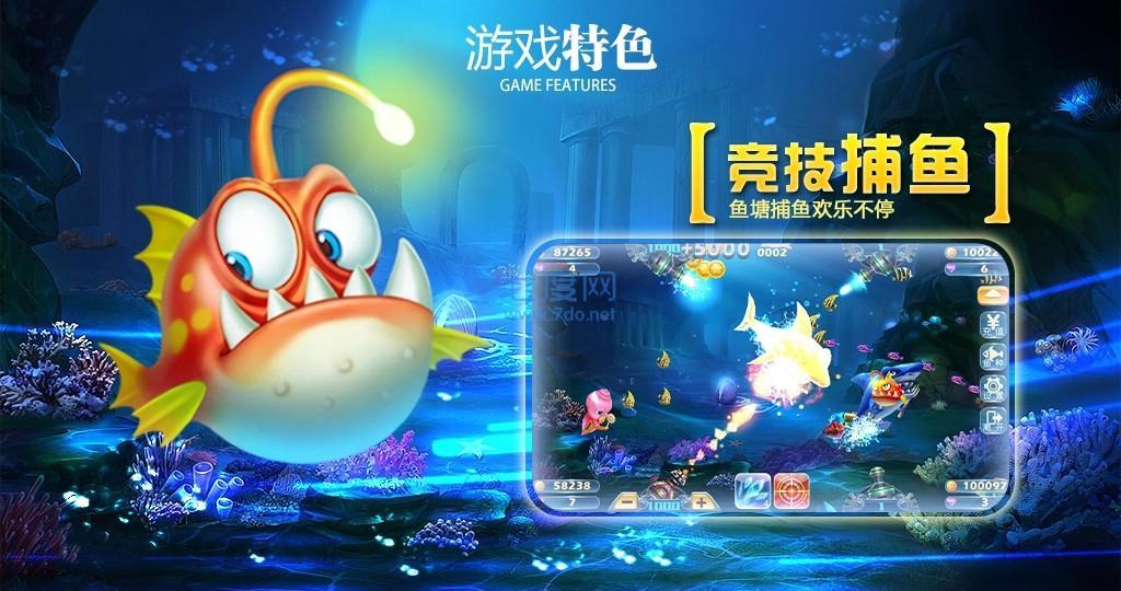 捕鱼猎人官方版是一款可以在这里与队友进行PK的棋牌手游,捕鱼猎人官方版里面有多种多样可以PK的玩法。你可以在这里玩到更多的内容,在这里有鲨鱼、魔鬼鱼、灯笼鱼、海龟等等鱼,每一种鱼捕到会有不同的奖励,一起来玩玩吧。