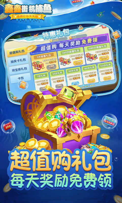 鑫鑫街机捕鱼原版为玩家准备了非常多的红包哦!也可以自由创建捕鱼游戏房红包福利多多,同时还有真人竞技,上线就可以体验超刺激的捕鱼玩法,喜欢就来下载试试。,是yn下载最新推荐的安卓游戏。