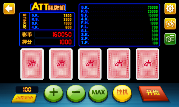 ATT连环炮翻牌机是同桌游研发的经典街机版游戏之一,游戏玩法来源于现实机以游戏,玩法简单,不需要掌握什么规则或者技术就可以尽情愉悦,因此在游戏厅和网络上十分流行和受欢迎。