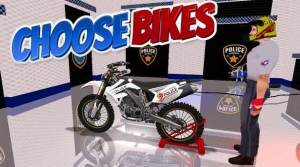 1、简单场景世界,操控警察角色挑战摩托车竞技,各种关卡任务;