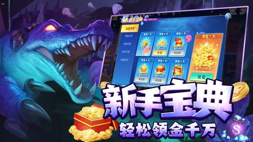 4、登录劲爆捕鱼游戏即送很多捕鱼金币,各种各样福利,取得手软。
