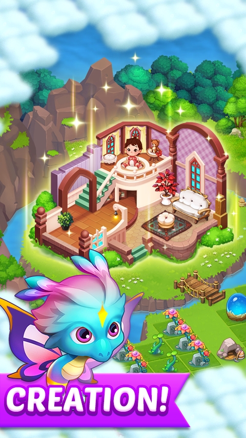 1.在建设中的童话花园中,仍然有许多被雾气包围的区域。只有合成相似的物品才能驱走雾气,发现更多的魔法精灵,并从雾气中唤醒更多的土地。