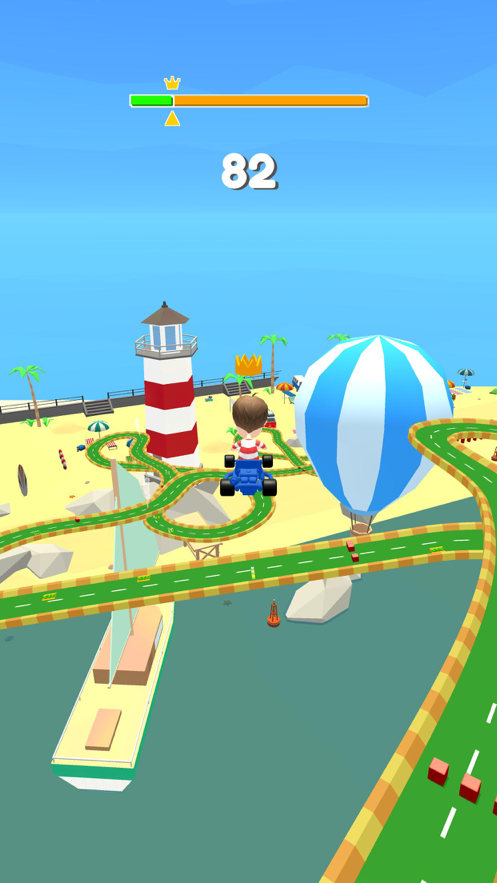 欢乐卡丁车比赛游戏是一款好玩的卡丁车竞速游戏,在这个崎岖的道路上,我们将开着自己的车辆进行一系列的冒险活动,前进的道路上,你会遇见很多的障碍,灵活躲避你就能生存下来,很多的小伙伴们将在这个赛道上与你追逐。