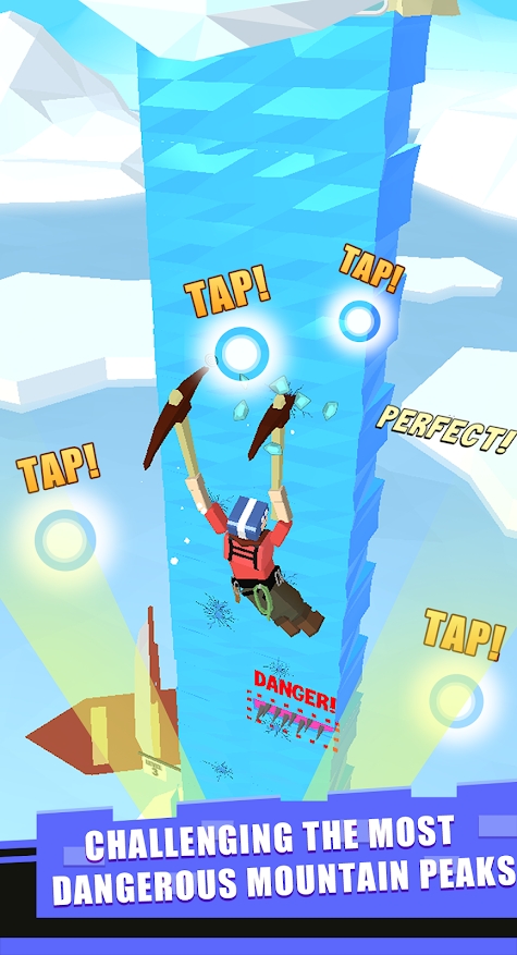 3.在游戏中,您将使用疯狂的斧头攀登这个冒险的山顶,攀登最危险的悬崖,避免掉落岩石,与其他攀岩者竞争,完成奖金等级,并成为最佳攀岩者。