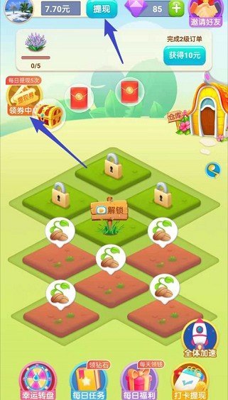 3.继续完成这款游戏的任务,把果树全部种上,体验有趣的内容,获得更多收益。