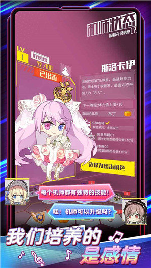 竖屏横版+节奏打击,单手操作,休闲养成。游戏中玩家需要操作机师上下移动击打敌人,敌人还会不停进化,变幻莫测的走位、皮糙肉厚的身板、造型奇特的外观,让您在享受一场不一样的视听盛宴。