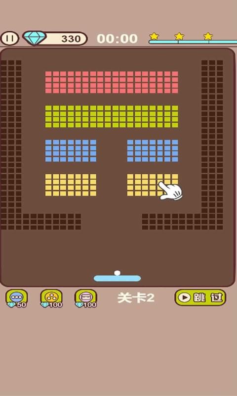 2、砸每一块砖,不要掉下来,通过不断地投小球和打砖块来得分。