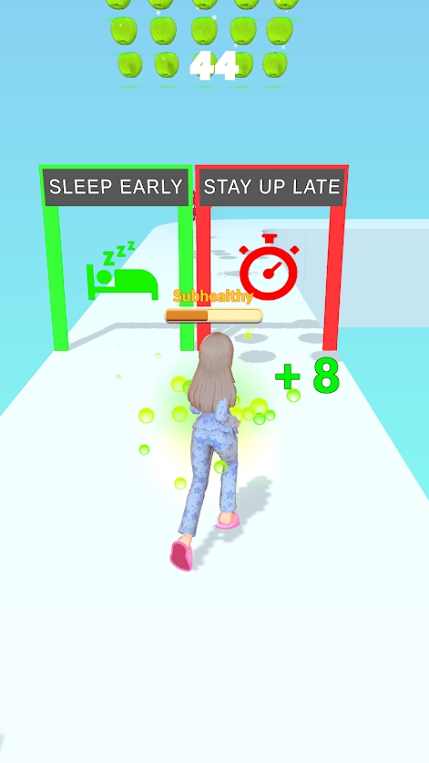 不要被游戏中的障碍物阻挡,拥有一个健康的身体才能跑的更远,所以你需要多吃关卡中的食物来充饥。
