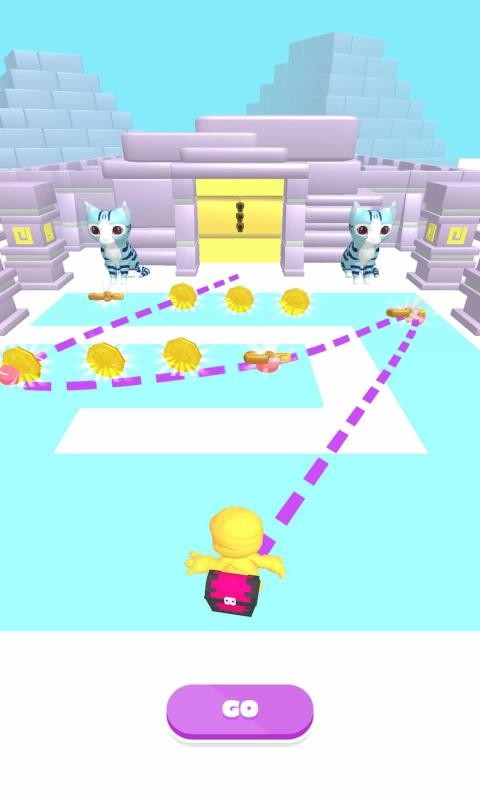 2、有趣的玩法,玩家简单的手指滑动就可以完成连线,可以为木乃伊制定适合的路线。