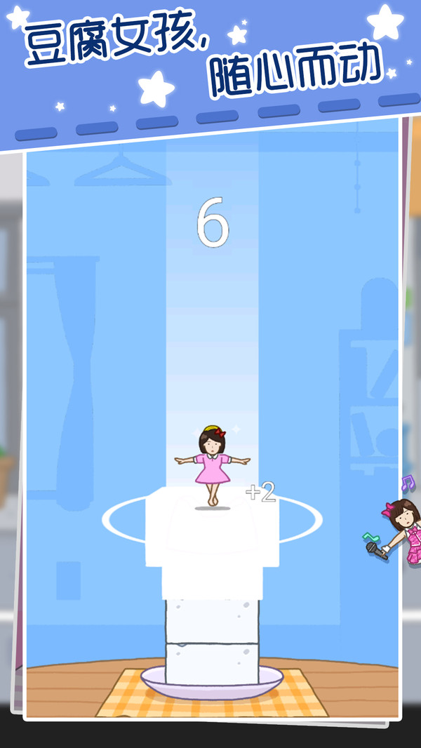 2.在这个游戏内用你的手速与眼力来让小女孩跳跃到更高的豆腐上吧。