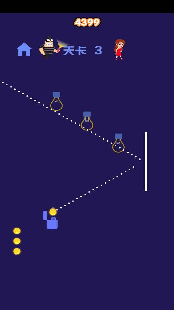一款超休闲益智闯关游戏,发射打火机的火星点燃灯泡,简单操作搭配趣味玩法上瘾十足,多样化关卡任你挑战,满星通关领取更多游戏奖励与成就吧。