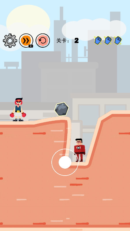 1.玩家在游戏过程中需要不断的点击拳头来推动方块完成游戏挑战,适合各个年龄段的玩家
