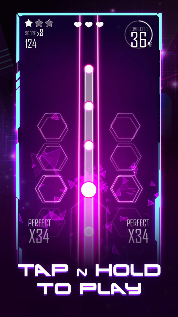 2、虚拟滑动按照要求进行操作,跟随着节拍就能够顺利的去完成众多关卡;