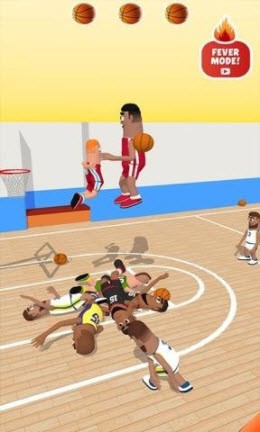 3、在瞄准篮筐之后可以直接来一个大灌篮,还有一些表情夸张的队友跟你打篮球。