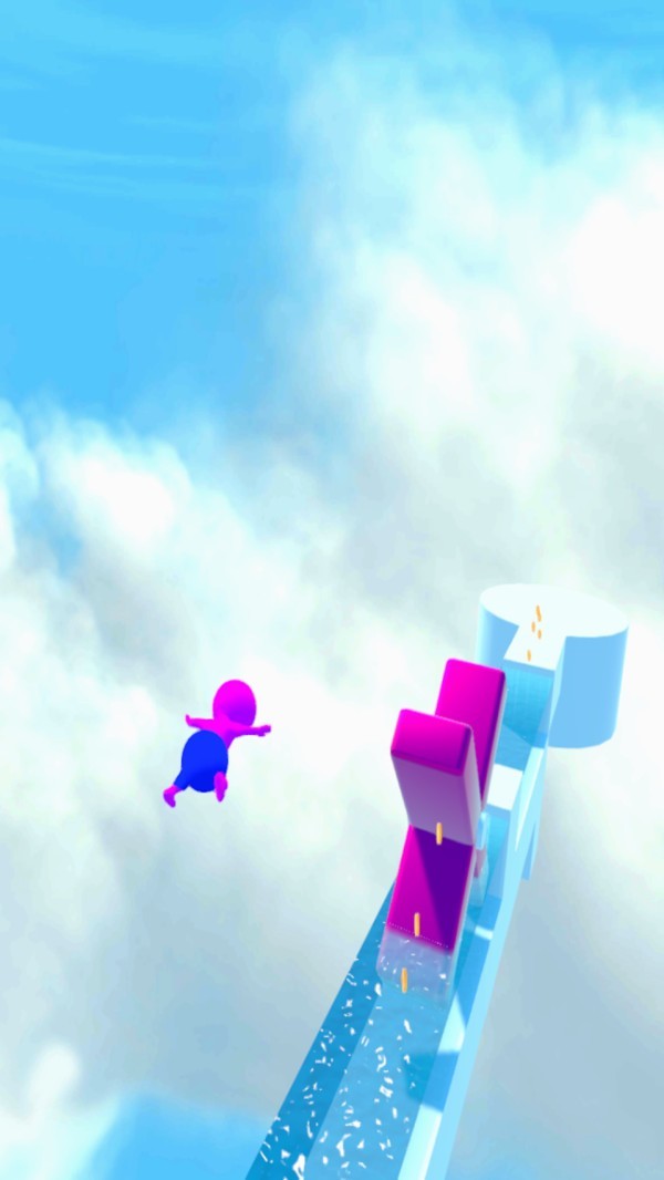 3.拿到金币,第一个到达终点。金币越多越好。你需要快速滑下水滑道,始终超越所有对手而不落水。
