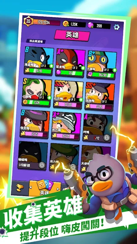 2、塑造了多个独特的鸭鸭战士,每个战士都有自己的战斗风格和专属技能,合理培养他们。