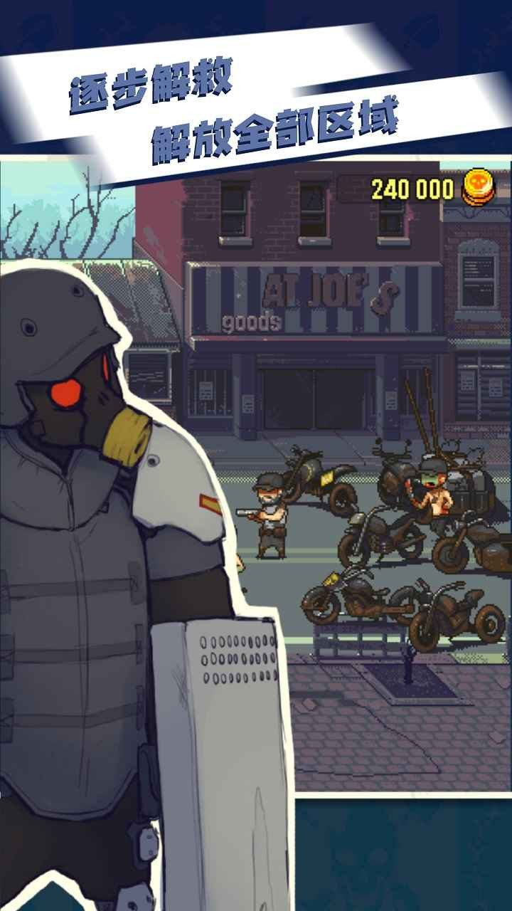 2.简单美观的像素风格,逼真的战场模拟,开启你自己的末日僵尸射击挑战。