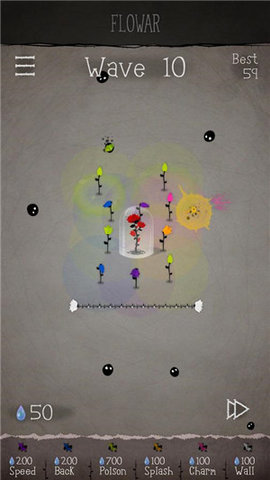 3.升级和治疗花朵,摧毁敌人并阻止其攻击。你需要使用适当的策略将这些花放置在不同的防御队形中。