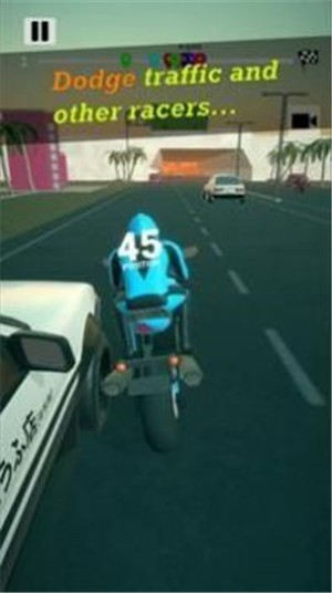 1、这款游戏是非常有趣的赛车竞速游戏,摩托车驾驶过程非常刺激,感受极限的驾驶比赛。