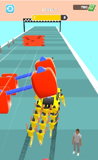 撞飞路上的人员来让他们帮忙拖车,撞的人越多,推车的人就会越多。