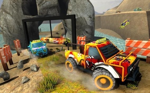 1、驾驶越野车的方式可普通赛车游戏是相似的,通过虚拟按键进行控制;