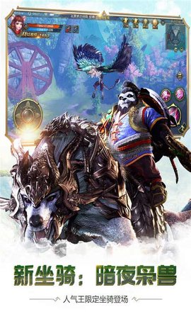2.所有新坐骑同时启动。剑齿虎,飞马,铁拳,不死马,暴龙,世界boss级坐骑咆哮兽,凤凰,鸟的重生,等着你征服!骑行和战斗更平稳!坐骑的选择,专业特性的运用,以及高超的操控将是胜利的关键。多变量PVP遭遇战将变得更加刺激,玩家将能够享受PVP的大世界。