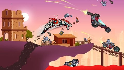 1.五颜六色的敌人,包括机器人战士和武装卡车,挡住了英雄的道路。
