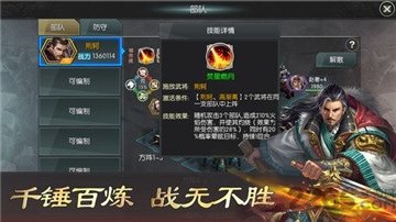 游戏为玩家提供庞大的武将体系,网罗汉末三国数百位历史名将,每一个都是能够独当一面的沙场猛将,每一位武将都有自己的专属技能,配合特色兵种更会产生奇效,此外独特的羁绊系统让武将也可以组合使用,组合在一起,再现“五虎上将”、“五子良将”盛景,爆发超凡威力!