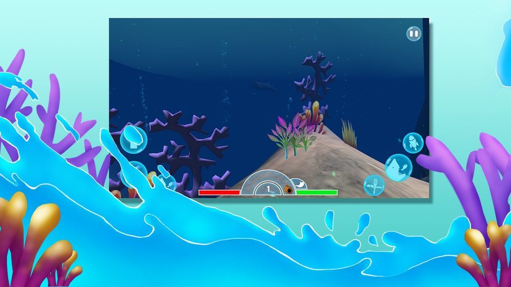 2、玩家可尽情扮演一条鱼在水中自由遨游,猎捕其它生物,补充能量,获得成长。