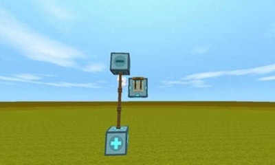 首先在地面随意的放置一个标记器+",随后用木围栏在上方依次叠加四段木围栏即可。