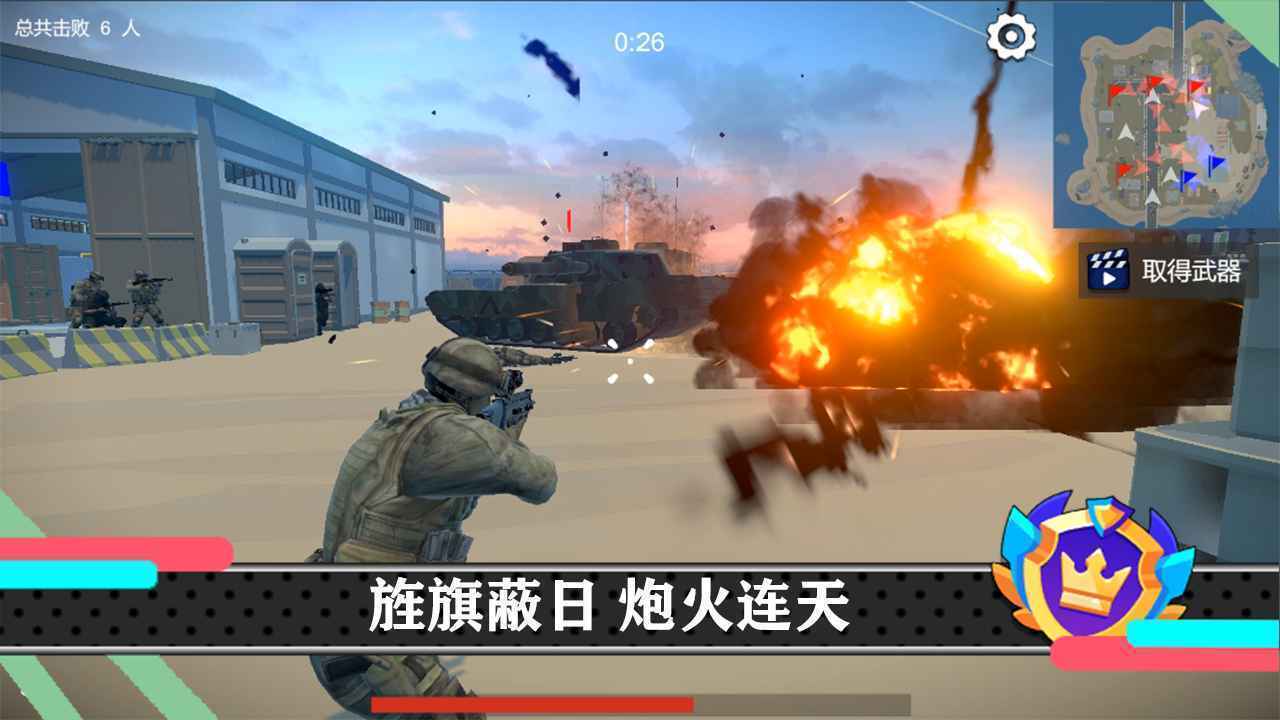 3、给你最为过瘾的战地式玩法,大战场多人竞技,夺旗模式感受近身射击的紧张刺激。