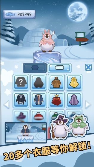 3、帮助你的企鹅可以更换更多的衣服,享受每个不一样服装的可爱。