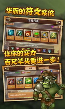 完美平衡的游戏性!激烈的战斗一刻也不会让你停下来休息!不停的建造,升级,施放技能,部署勇士,使用道具等等