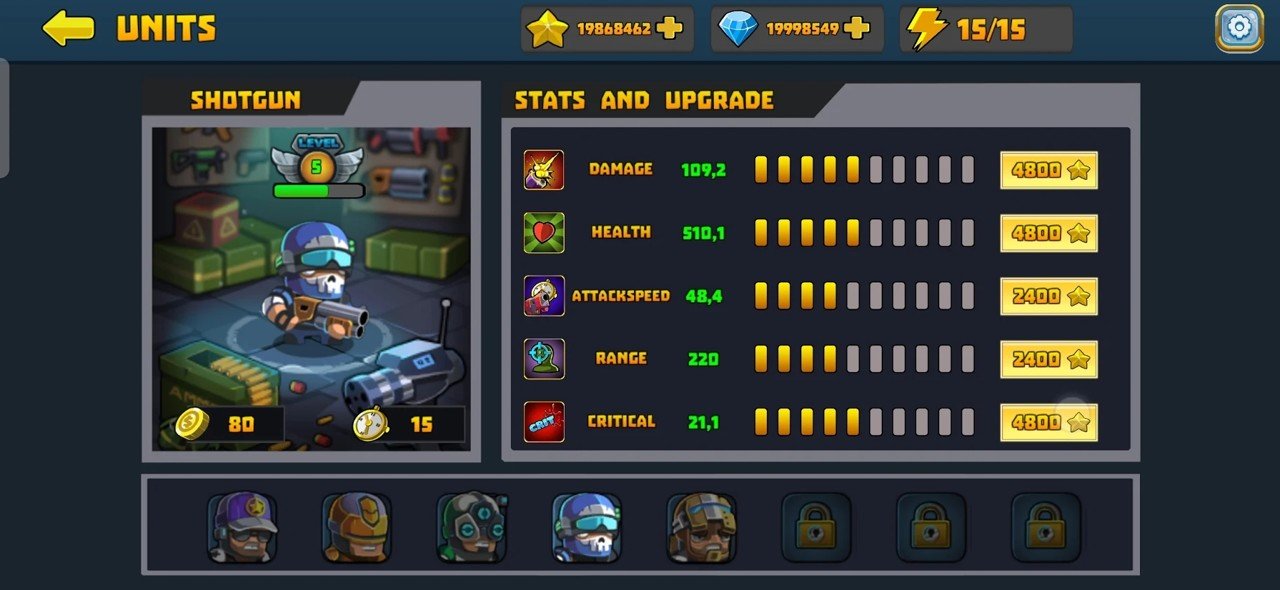 1.加强防御属性的能力,士兵们共同的玩法各种战斗,解锁出最强大的工具和道具。