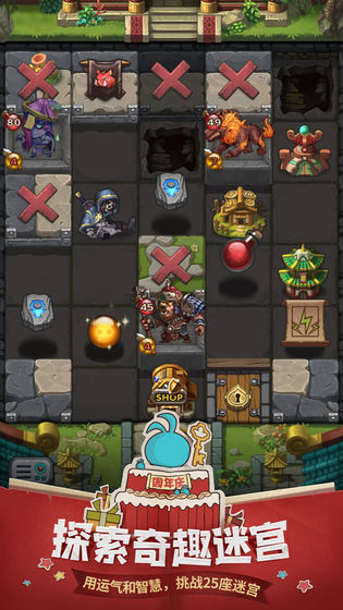 但也没有这么简单。因为当你翻开石板,底下藏着的可能是会不断伤害你的怪物,也可能一个救命道具,魔法卷轴,甚至是和你撒娇的粉红小猪猪。精心计算,小心翼翼,才能前往更深处寻找神秘宝藏。