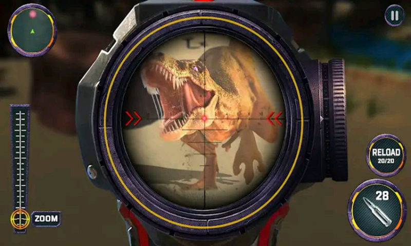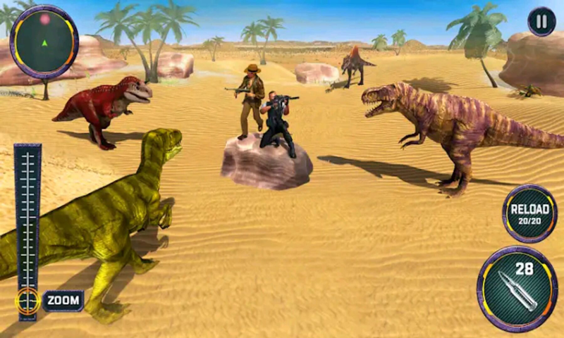 2、得到这个恐龙射击游戏,让你的名字瞄准和射击生存到最后,并在这片丛林的恐龙生存射击游戏击落目标恐龙;
