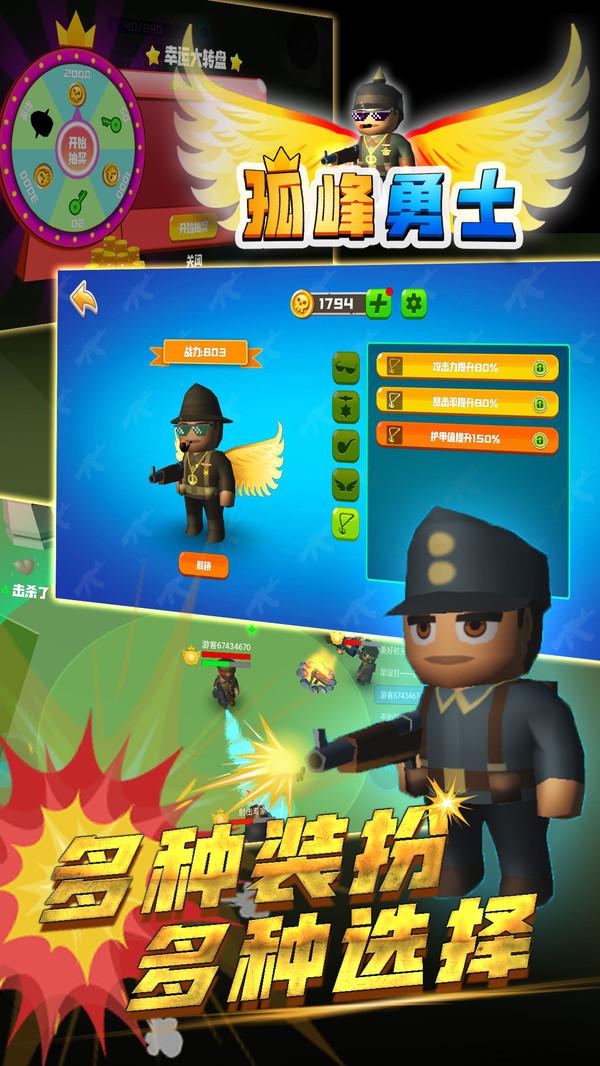 2.每一个角色都是拥有不同的实力的,玩家需要完成不同的任务进解锁,同时你可以选择各种不同武器皮肤,更加炫酷。