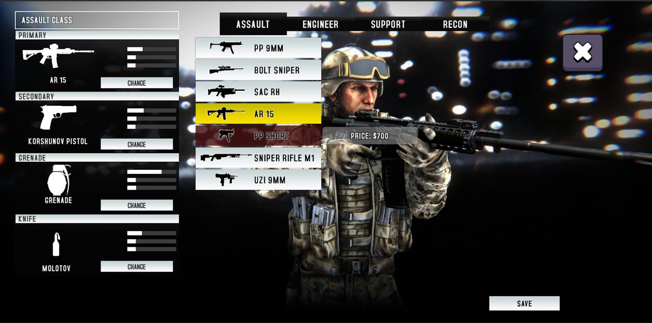 1、30多种现代武器,选择您的对策和战斗策略:shot弹枪,机关枪或狙击手或任何其他喜欢的武器。